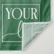 Green and white backdrop for your business with your logo in a frame around your custom text. Add your social media handle beneath white social media icons. Green small business backdrop personalised with your logo and social media.
