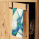 Green zigzag or saws on intense cyan to royal blue tea towel