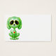 This adorable green puppy design is decorated with swirls and dot patterns. Delicate flower pedals circle the pure black eyes in the tradition of the Day of the Dead sugar skulls. The little dog is sitting down, looking forward with its tail waving in the background. The over sized head sits on a tiny body which creates a playful, cartoon like appearance. A five point star sits in the middle of the puppy’s forehead while a bright red and yellow heart appears in the centre of the chest. This cute little puppy is a fun and stylish design inspired by the beautiful patterns of Day of the Dead sugar skulls.