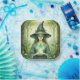 These party plates feature a watercolor whimsical witch holding a green crystal
