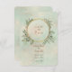 This Save the Date card matches the beautiful pale green background with greenery in a gold frame invitations