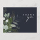 Greenery and Gold Leaf Script Dark Navy Thank You Postcard