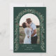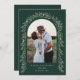 A festive photo Christmas holiday card with hand painted watercolor garland and modern script typography. The back has a place for a longer personal note. Click the edit button to customize this design with your details.