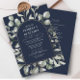 Enjoy an elegant watercolor greenery & eucalyptus illustration in arch shape over a dark navy background combined with an elegant calligraphy typography with a touch of real rose gold foil. On the back there is template spaces to add details and QR code for your guests to scan and RSVP on your website Need pieces that are not the in the collection? please contact me using the contact button below.