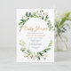 Invite your friends and family to celebrate your baby shower with this gorgeous watercolor greenery leaves terrarium gender neutral Baby Shower Invitation and faux gold foil handwritten text.