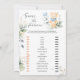 This design features a friendly Teddy Bear with blue bow and heart balloon. He is surrounded by greenery foliage. Greenery Baby Shower Games - Double sided card - Two games in One! Baby Shower Bingo Game in the front of card and Guess the features/Baby Traits game on the reverse.
