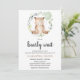 Celebrate the upcoming arrival of your little one with our charming Greenery Bear Baby Shower Invitation. This sweet design features an adorable bear holding a balloon, nestled inside a delicate round greenery wreath, perfect for a boho or woodland-themed baby shower. Whether you're planning a cosy gathering or a boho celebration, this sweet bear invitation sets the tone beautifully. BBS799