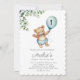 Greenery Bear Birthday Invitation, first Teddy Invitation