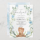 Greenery Bear Blue Flowers Boy Baby Shower Invitation