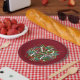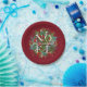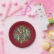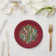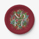 The word NOEL and your name among winter leaves and red, white and gold berries on a deep cranberry red background (or any colour), these small cocktail, appetizer or dessert paper plates are elegant for any holiday Christmas occasion. MATCHING items in our store.