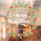 A watercolor wreath of greenery and berries and the words - We Wish You a Merry Christmas and a Happy New Year (or any text) are featured on this window cling - Choose ANY SIZE and **front or back cling. (Size shown is 24" x 24", but can be made larger or smaller.)