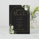 This elegant botanical greenery leaves black, and gold arch save the date invitation can be personalised with your information in chic modern typography with your special photo on the reverse. Designed by Thisisnotme©