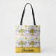 Greenery blossom floral pattern personalised name tote bag