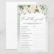 Watercolor white roses with fresh greenery arrangement eucalyptus and foliage all this at green watercolor background - this find the guest game is idealy for you Bridal shower party