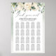 Greenery boho white roses wedding seating chart, with modern paster watercolor leaves and white hydrangea. 20 tables. Contact me for customization.Blush Roses ©