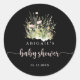 Greenery Boho Wildflower Black Baby Shower Favour Classic Round Sticker