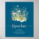 Greenery Boho Wildflower Navy Wedding Open Bar Poster