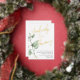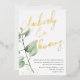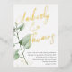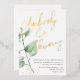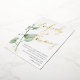 Beautiful botanical foil wedding invitation with bold script names in gold foil with a single watercolor stem and a touch of gold foil confetti.