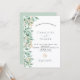 A chic white background decorated with green and faux gold botanical sprigs, greenery florals and foliage. Personalise and add your names and wedding details. Black and green letters.