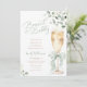 This elegant Brunch and Bubbly Bridal Shower Invitation features soft watercolor greenery, eucalyptus foliage, and a delicate coquette green bow for a fresh and romantic look.