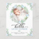 Lovely greenery wreath, photo birth announcement, and thank you card. Easy to personalise with your baby photos and details. Please get in touch with me via chat if you have questions about the artwork or need customisation. PLEASE NOTE: For assistance on orders, shipping, product information, etc., contact Zazzle Customer Care directly https://help.zazzle.com/hc/en-us/articles/221463567-How-Do-I-Contact-Zazzle-Customer-Support-.