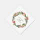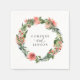 Rustic bohemian watercolor botanical foliage and coral floral wreath, personalised paper napkins. Text font style, and colour can be customised.