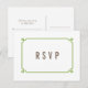 Simple and minimalist Deco Chic Wedding RSVP Postcard with a modern green art deco ornamental border. This classic and elegant response card is easy to customise with your wedding details. Find more personalisation options by clicking Customise.