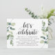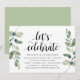 Modern Rustic Greenery Eucalyptus,, Black Script themed invitation card (with card title: lets celebrate). It is perfect for your wedding elopement reception / post wedding celebration party. Add your details in matching black font / lettering.