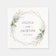 Add a personal touch to your wedding celebration with these stylish and memorable party items! Design features greenery and gold frame on white background.