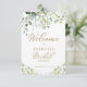 A greenery eucalyptus welcome sign for bridal shower. Easy to personalise with your details. Great for greenery or garden-themed bridal shower. Please get in touch with me via chat if you have questions about the artwork or need customisation. PLEASE NOTE: For assistance on orders, shipping, product information, etc., contact Zazzle Customer Care directly https://help.zazzle.com/hc/en-us/articles/221463567-How-Do-I-Contact-Zazzle-Customer-Support-.