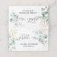 This design depicts a floral-watercolor design. Theme comes in green white and gold.This simple minimalist elegant design showcases white background with eucalyptus leaves with elegant leaf arrangement bouquets done in watercolor effect. a light green watercolor abstract with glitter stars effect adds more detailing to the piece. The intricate design goes well with a fall, summer and spring wedding. Available as a large bundle combo with wedding stationary. Modern handwritten calligraphy fonts are used in golden and white lettering.