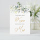 This design features a watercolor illustration of greenery foliage and eucalyptus leaves. This card is perfect for adding some fun and excitement to your Bridal shower or Bachelorette party. On the top of the card - greenish and golden effect confetti.