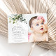 Invite friends and family in style and set the tone for your special day with this elegant first holy communion invitation. Design features eucalyptus leaves and greenery on white background.