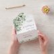 These "Greenery Eucalyptus Leaves Wedding All in One Invitations" are designed with an easy to tear off perforated RSVP postcard. Just simply fold each card into the outlined shape, and then seal and send - no envelope needed for shipping.