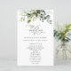 Add a personal touch to your wedding celebration with these stylish and memorable party items! Design features eucalyptus leaves and greenery on white background.