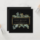 This beautiful elegant holiday wedding invitation features a classic gold geometric frame with greenery eucalyptus. Christmas greenery on a modern black background. Perfect design for your winter wedding.