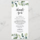 This is the Modern Rustic Greenery Eucalyptus Place Setting Wedding Dinner Thank you card. Share the love and show your appreciation to you family and friends, when they sit down at their seat and read this personalised charming thank you place setting card. It's a wonderful way to kick off your special day celebration!