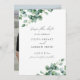 Introducing our minimalist and trendy wedding Save the Date, featuring a Elegant Greenery Eucalyptus Watercolor serene green and white colour with couple photo. The delicate black calligraphy adds a touch of sophistication to this minimalist invitation, making it an ideal choice for a modern wedding celebration. Select the paper type as per your wish before purchasing.