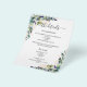 A modern, elegant wedding details/program/timeline. A white background decorated with eucalyptus greenery and golden foliage. Personalise and add your names and wedding details. Black coloured letters.