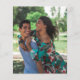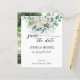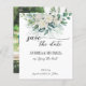 Budget greenery eucalyptus white roses wedding save the date invitation template with couples photo at the back.