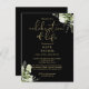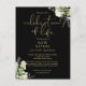 An elegant black and gold, botanical personalized watercolor greenery celebration of life remembrance invitation postcard. Designed by Thisisnotme©