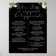 This elegant black and white wedding itinerary sign, featuring pretty floral greenery, can be personalised with your information in chic typography. Designed by Thisisnotme©