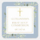 Greenery Floral Dusty Blue First Holy Communion Square Sticker