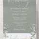 Greenery Floral Elegant Script Sage Green Wedding All In One Invitation