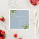 This elegant greenery botanical floral wedding napkin can be personalised with your information in chic typography on a dusty blue background. Designed by Thisisnotme©