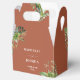 This elegant greenery botanical floral wedding favour box can be personalised with your information in chic typography on a terracotta background. Designed by Thisisnotme©
