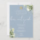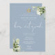 Greenery Floral Monogram Blue Bar Mitzvah Invitation