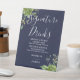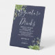 Greenery Floral Navy Blue Signature Drinks Pedestal Sign