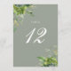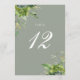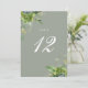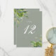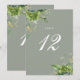 These elegant botanical greenery floral wedding table numbers can be personalised in chic typography on a sage green background. The cards are printed on the front and back (double-sided). Designed by Thisisnotme©
