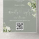 Greenery Floral Script Sage Green QR Code Wedding All In One Invitation